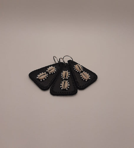Leather and Cowrie Shell Keychain