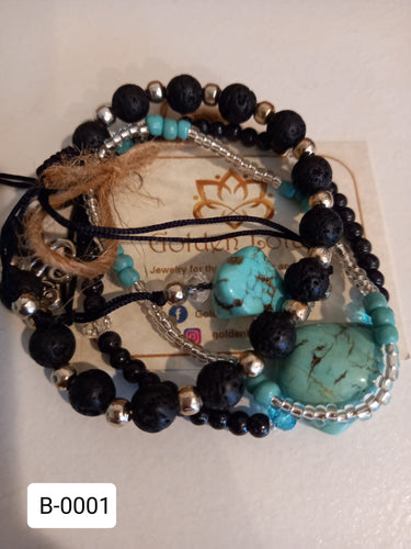 Lava Stone & Turquoise Bracelet Stack