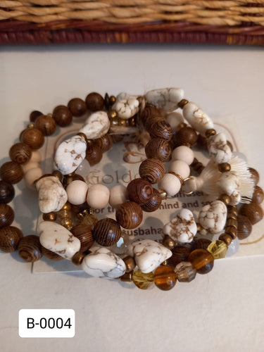 White Turquoise & Rosewood Bracelet Stack
