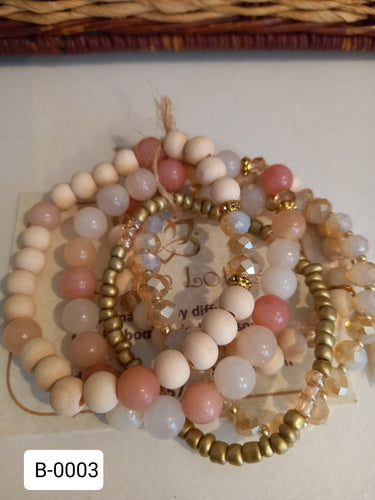Pink Aventurine, Crystal & Balsa Wood Bracelet Stack
