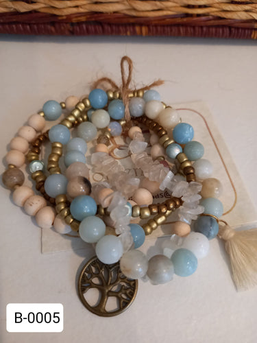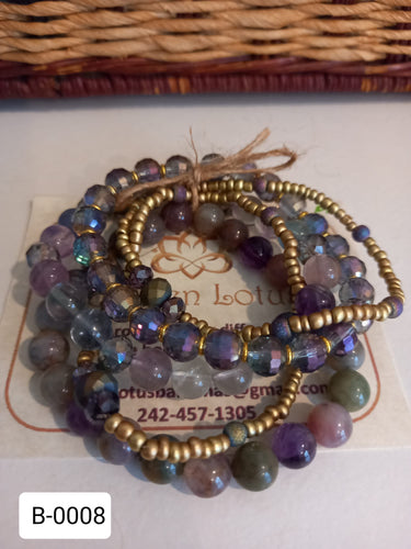 Flourite, Indian Agate & Crystal Bracelet Stack
