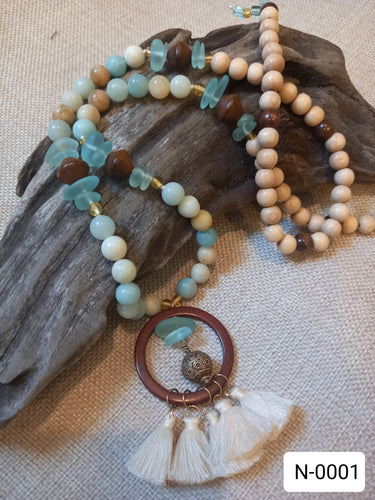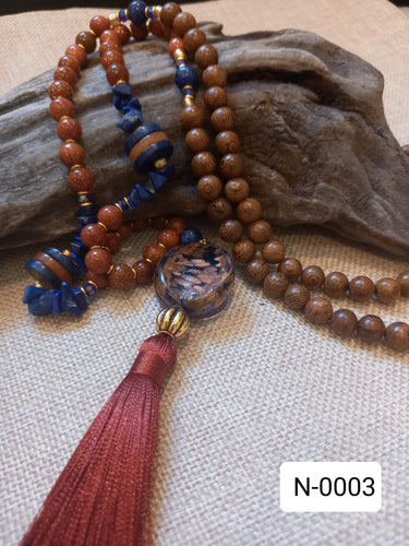 Goldstone, Lapis Lazuli, Rosewood & Murano Glass Necklace